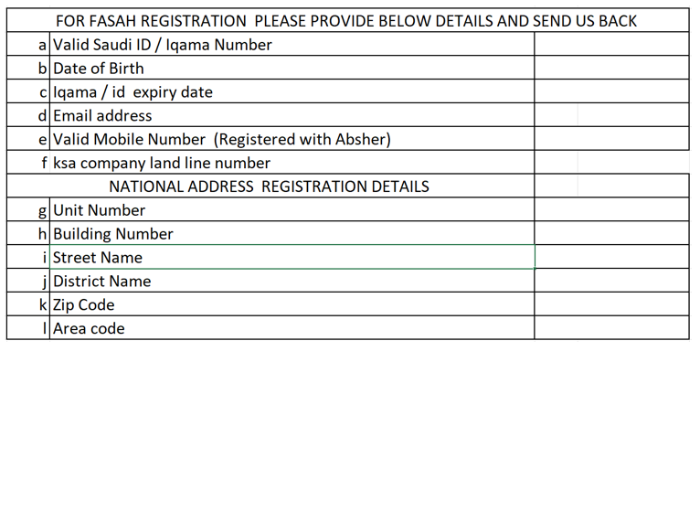 Fassah form (Fill, sign & send us the scan copy to submit online to customs prior to the dispatch date)